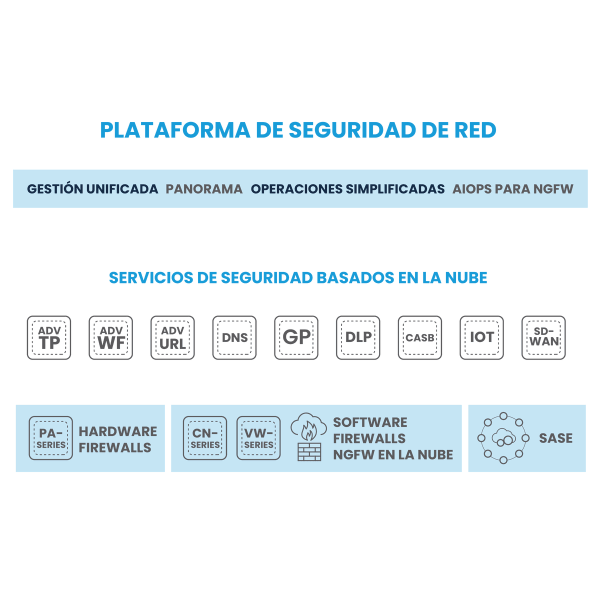 Para el segmento de las grandes empresas y corporaciones contamos con la solución de Palo Alto, basada en aprendizaje automático, capaz de detener amenazas conocidas y desconocidas en tiempo real, ofreciendo prevención de ataques en línea sin necesidad de firmas.