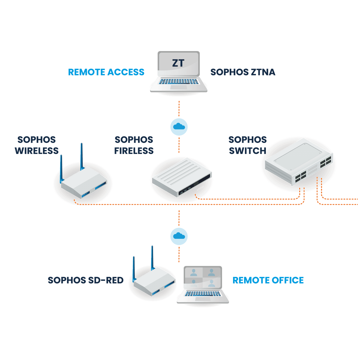 Para el segmento de las pequeñas y medianas empresas contamos con una solución provista por Sophos que permite consolidar y simplificar la seguridad con un único proveedor, una consola de gestión en la nube y un agente especializado.